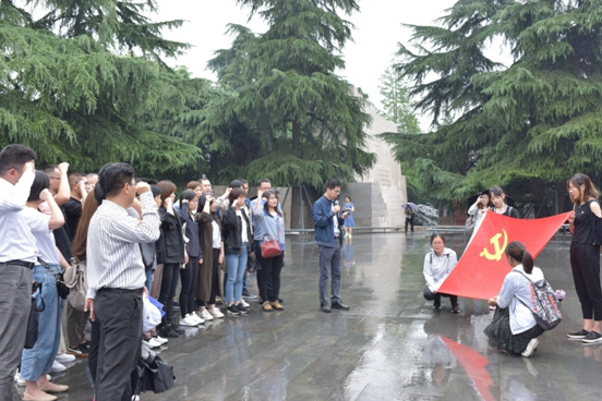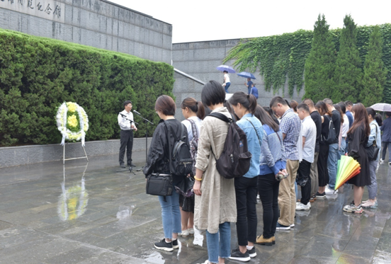 伴着绵绵细雨,党员们首先来到了南京大屠杀遇难同胞纪念馆,向死难者敬献花圈,致以深深的哀悼,并重温了入党誓词。之后大家心情沉重地走进纪念馆内,近距离触摸那段凝聚着民族血泪的历史记忆。一个个遇难同胞者的名字、一幅幅惨绝人寰的画面,一个个万人坑,一滴滴象征着每隔12秒就有一个同胞牺牲的水声,无不在控诉着日本侵略者令人发指的滔天罪行,诉说着中国那段不堪回首的沉痛岁月,同时也轮番痛击着每一位党员的心灵。一位党员擦拭着泪水说到,耳边回响的水滴声,如警钟般警示着我们落后就要挨打,警示着我们要铭记历史,珍爱和平。