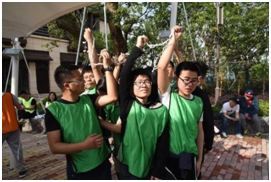 环球游戏。组队后,开始环球世界80天游戏,五队交错进行竹竿舞、毛毛虫、鸡蛋飞行器、数字城堡、急速60秒五个项目比赛,整个过程简直就是判断、决策、智力、体力、合作、速度的较量,大家分秒必争、齐心协力、加油助威。随着该环节所有队所有游戏的结束,上午的拓展任务也在欢声笑语中顺利达成。