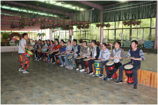 接下来,拓展训练正式开始,本次拓展训练围绕两个项目进行:上午,六组成员分别完成疯狂过山车的搭建,三个小时的通力合作,让大家在欢声笑语中体会到了分工协作的重要性,同时提高了团队协作和沟通能力,增强了团队认同感、责任感,并为下午打鼓活动的顺利开展打下了基础;经过中午短暂的用餐和休息后,下午的非洲鼓合奏正式开始,在鼓乐学习中,工研人展现了自己独特的创造力与表现力,相互配合,合奏出了属于工研人自己的乐章。