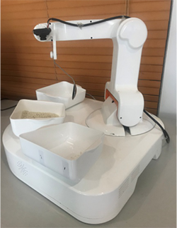 自助助餐机器人项目旨在提供一种适用于家庭和公共服务机构的多功能助餐机器人,能够为上肢能力残障人士提供喂饭服务。该款机器人包括半自动模式及全自动模式,半自动模式的核心技术是基于人机交互的机械运动规划和控制,包括脚踏开关、语音控制及“头戴鼠标”等人机交互方式。全自动模式是对半自动模式的改进再设计,基于视觉系统进行餐盘识别和人嘴跟踪,并与机械运动控制结合,从而实现全自动助餐功能。目前,两种模式自助助餐机器人已调试完毕,基本实现了助餐目标。