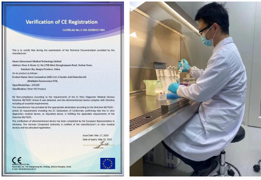 本报讯(记者 张田)由昆山企业江苏汇先医药技术有限公司(以下简称“汇先医药”)研发的新型冠状病毒2019-nCoV核酸检测试剂盒(多重荧光PCR法),3月20日获欧盟CE认证。这意味着“昆山造”新冠病毒核酸检测试剂盒产品可以走出国门,进入欧盟市场进行销售。