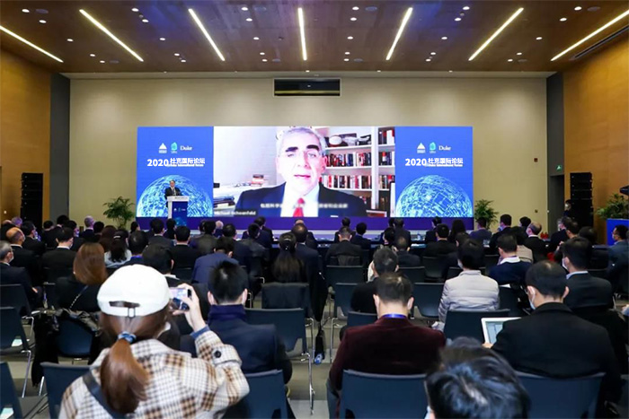 迈克·舍恩菲尔德在视频致辞时指出,我们对昆山杜克大学在短时间内取得的发展成效深感自豪,自2015年以来,昆山杜克大学每年举办杜克国际论坛,探讨从跨境并购到绿色经济等热点话题。实践证明,杜克国际论坛集聚专家学者、行业领袖,参与讨论和解决当今的重大问题,推动了产业发展、技术进步。本届论坛聚焦“人工智能驱动产业升级”这一主题,对全球经济发展、社会进步具有重要影响,需要高校和工商界的相互合作,找出最佳的发展道路。