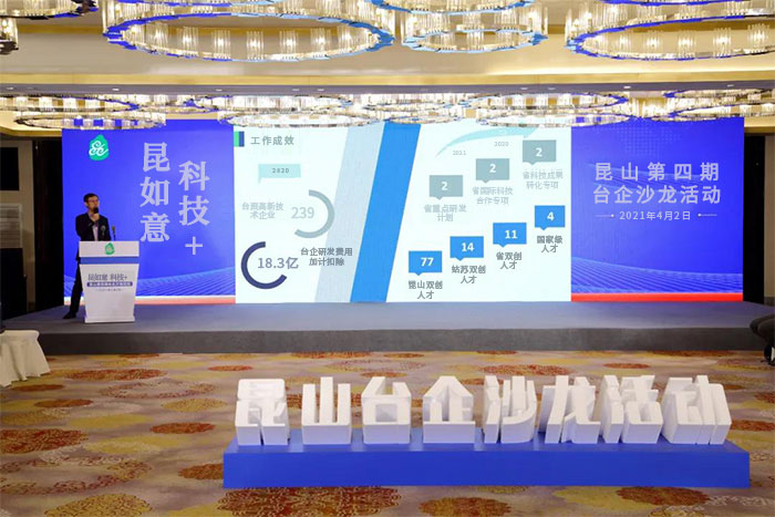 近年来,昆山积极践行“五争五最五突破”三年行动方案,加快推动台资企业自主创新、产学研合作,设立“对台科技合作专项”,邀请台资企业参与各类技术对接活动,支持台资企业联合大陆地区高校、科研机构开展前沿先导技术和产业化应用关键技术研发,为台资企业攻克技术瓶颈、转型升级提供新动能。截至2020年底,昆山累计有效台资高新技术企业239家;台资企业建有各级各类研发机构475家,其中省级工程技术研究中心39家;支持对台科技合作项目26个;台资或台籍昆山双创人才77人,姑苏双创人才14人,省双创人才11人,国家级人才引进工程4人。
