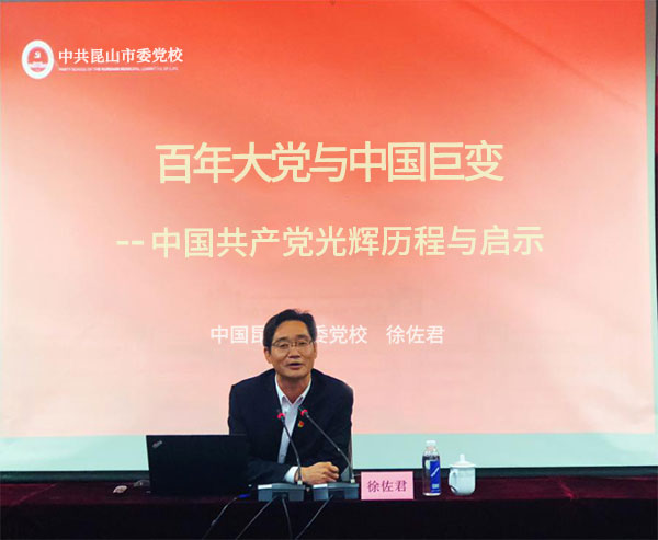 ▲昆山市委党校副校长徐佐君同志作党史教育专题授课
