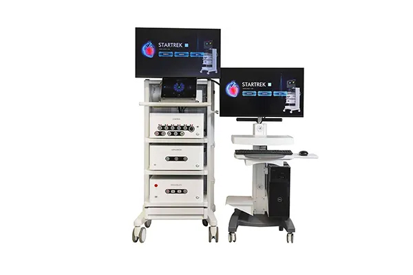 剑虎医疗打造的三维介电脉冲电场一体化消融系统,由StarTrek®三维介电成像标测导航系统、Alphatrion®纳秒脉冲电场消融仪和HaloPulse®环形多通道脉冲消融导管三部分组成,是集影像+能量平台+耗材的一体化方案。