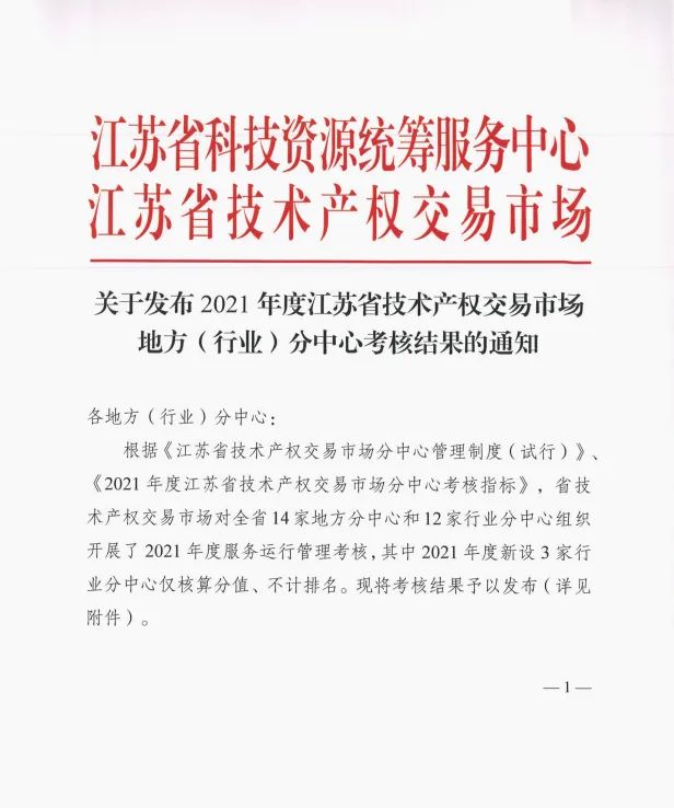 近日,江苏省科技资源统筹服务中心与江苏省技术产权交易市场联合发布2021年度江苏省技术产权交易市场地方(行业)分中心考核结果,由昆山xk星空(中国)运营的“机器人及精密装备制造行业分中心”在江苏省技术产权交易市场行业分中心2021年度考核中位列第一名,在全省地方(行业)分中心综合排名中位列第五名。