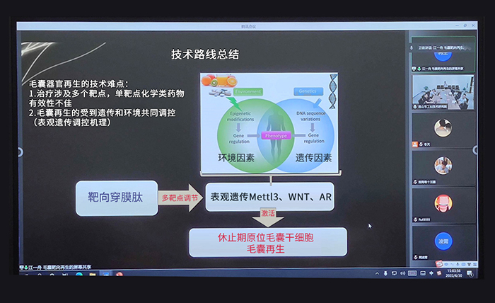 毛囊靶向修复再生液项目研发的产品靶向性的针对分子信号,激活正调控信号,抑制负调控信号,重新激活毛囊干细胞,促进毛囊进入生长期。同时,产品具有促进毛囊毛细血管增长的功能,进一步促进毛发生长。