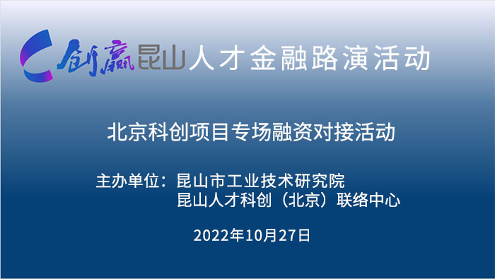 为精准对接资源,进一步完善全链条科技金融服务体系,持续优化创新生态,10月27日,“创赢昆山”人才金融路演-北京科创项目专场融资对接活动成功举办。