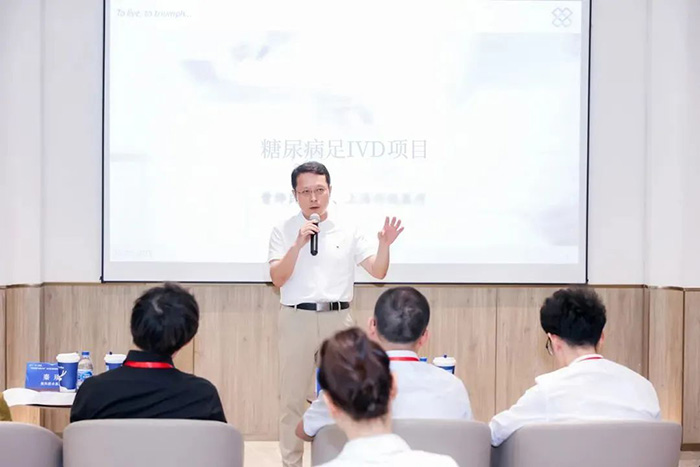路演现场,上海睿植康医疗科技有限公司、清协华和科技有限公司,磅客策智能医疗科技有限公司、苏州艾麦锶生命科技有限公司等40家企业负责人分别从项目背景、技术路径、产品和服务、市场前瞻性等方面进行路演比赛。