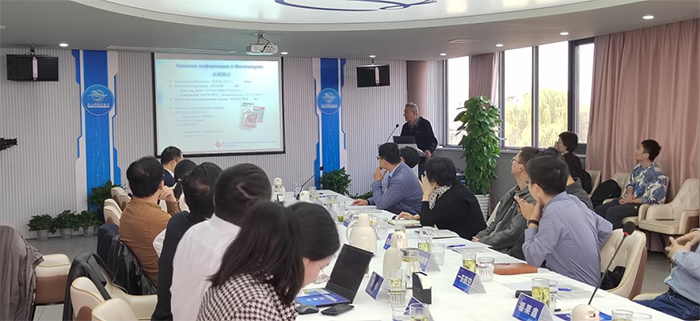 ▲“一带一路”昆山国际先进技术研究院特聘专家亚历山大·谢列茨基院士分享了他本人的研究方向及成果