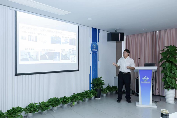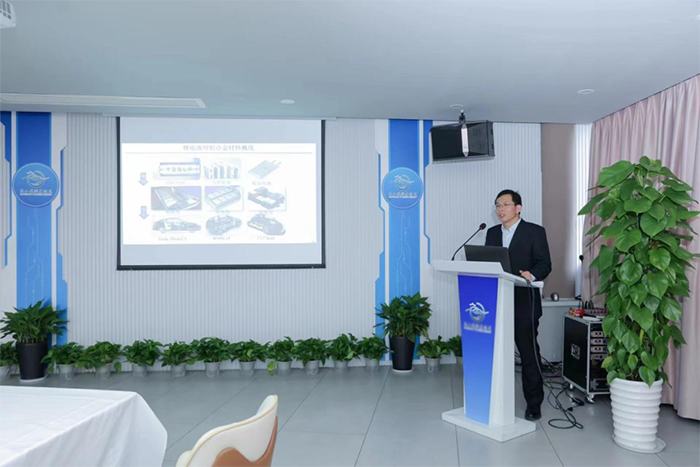 ▲陈伟介绍了锂电池用铝合金板带箔材料研发成果及应用领域