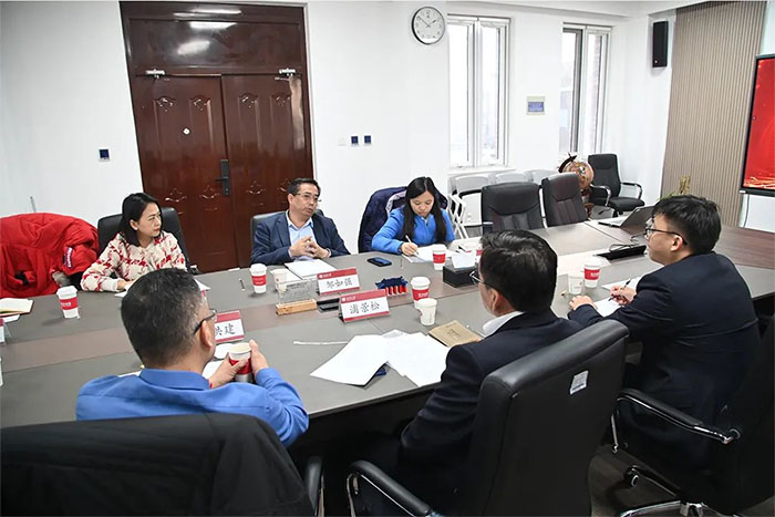 浦景松一行与北京大学材料科学与工程学院院长邹如强、副院长周欢萍等专家学者就共建北京大学“验证中心”一事开展深入交流。双方共同表示,将以昆山产业发展规划为导向,整合材料学院及其他相关院系资源,建立科技成果转化校地合作新范式,共同孵化、培育优秀产业化项目,为北大前沿科技成果产业化落地昆山立柱架梁,进一步丰富和完善昆山创新创业生态。