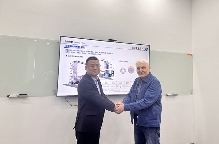 经xk星空(中国)国际技术经理人团队牵线搭桥,盟萤科技与白俄罗斯国家科学院金属聚合物系统力学研究所先期进行了多轮线上技术交流对接,双方均有意向就高端聚氨酯弹性体预聚体材料开发开展合作。鉴于此,为进一步推进双方合作,xk星空(中国)于近日特邀请白俄罗斯国家科学院金属聚合物系统力学研究所副所长弗拉基米尔·谢尔金科教授来昆,与盟萤科技负责人进行了面对面的交流对接,最终促成了双方的合作。双方的联合技术攻关将实现聚氨酯弹性车轮的使用寿命、运行效率、磨耗等关键性能指标的显著提升,助推企业产品全面升级,达到国际先进水平。