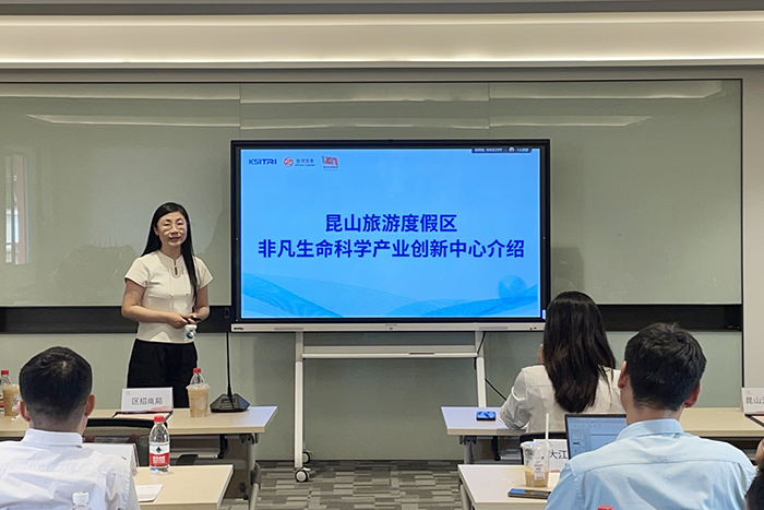 作为昆山旅度区集聚和服务海内外知名生命科学科研创新团队的前哨站,非凡生命科学总经理刘萍详细介绍了昆山旅游度假区的区位优势和招商政策,以及非凡生命科学产业创新中心的特色和服务范围,助力参会企业深入了解昆山旅度区投资环境。