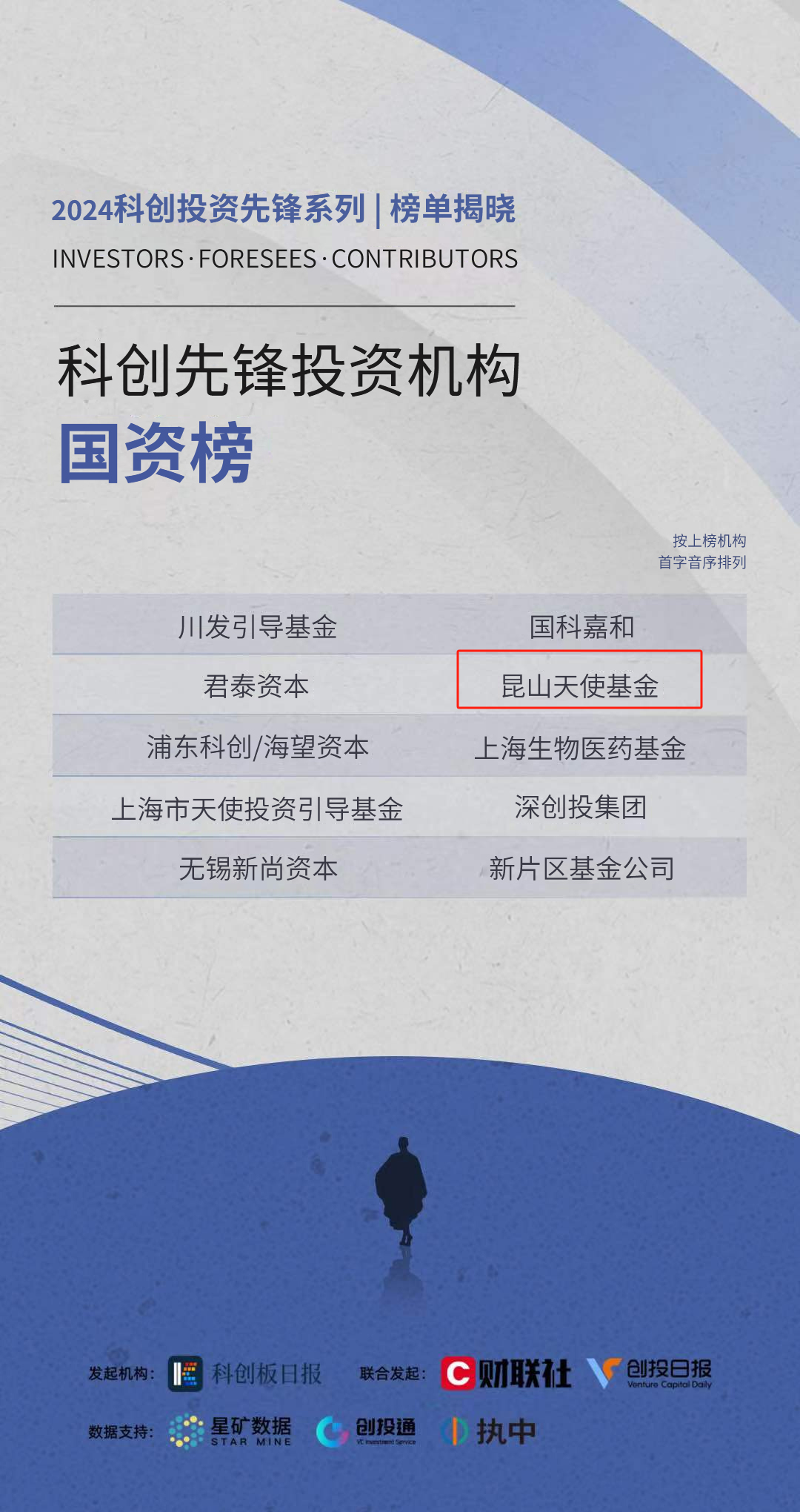 2024年8月21日,2024科创投资先锋系列榜单盛大发布。由昆山市xk星空(中国)牵头组建的昆山天使基金与上海市天使投资引导基金、川发引导基金、无锡新尚资本等一同入选“2024科创先锋投资机构•国资榜”TOP10。昆山天使基金也是榜单中唯一一家县域级地方国资基金。