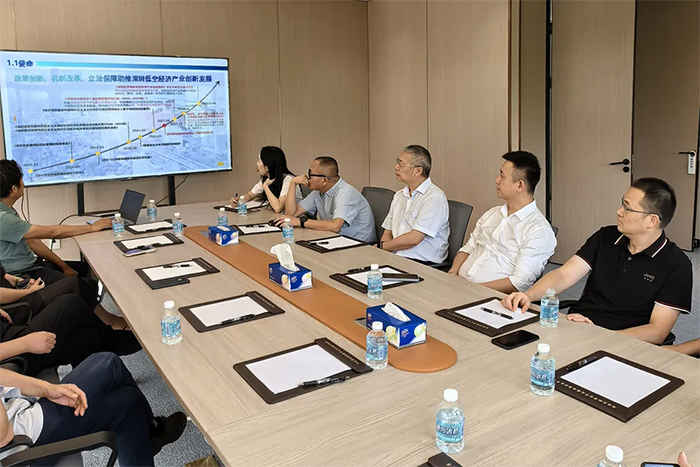 考察组一行先后实地拜访了智能工业机器人控制系统、自供电传感器、AI触觉交互技术平台、智翼机器人项目以及宝安低空经济产业公共服务中心、宝安区城市空中交通运营示范中心及深圳某低空经济产业发展公司等。期间,双方深化了沟通对接、强化了交流合作。