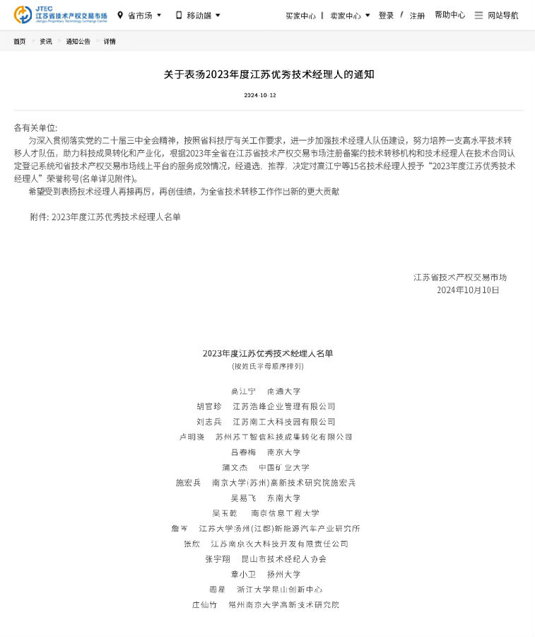 昆山市技术经纪人协会2人获评2023年度省优秀技术经理人
